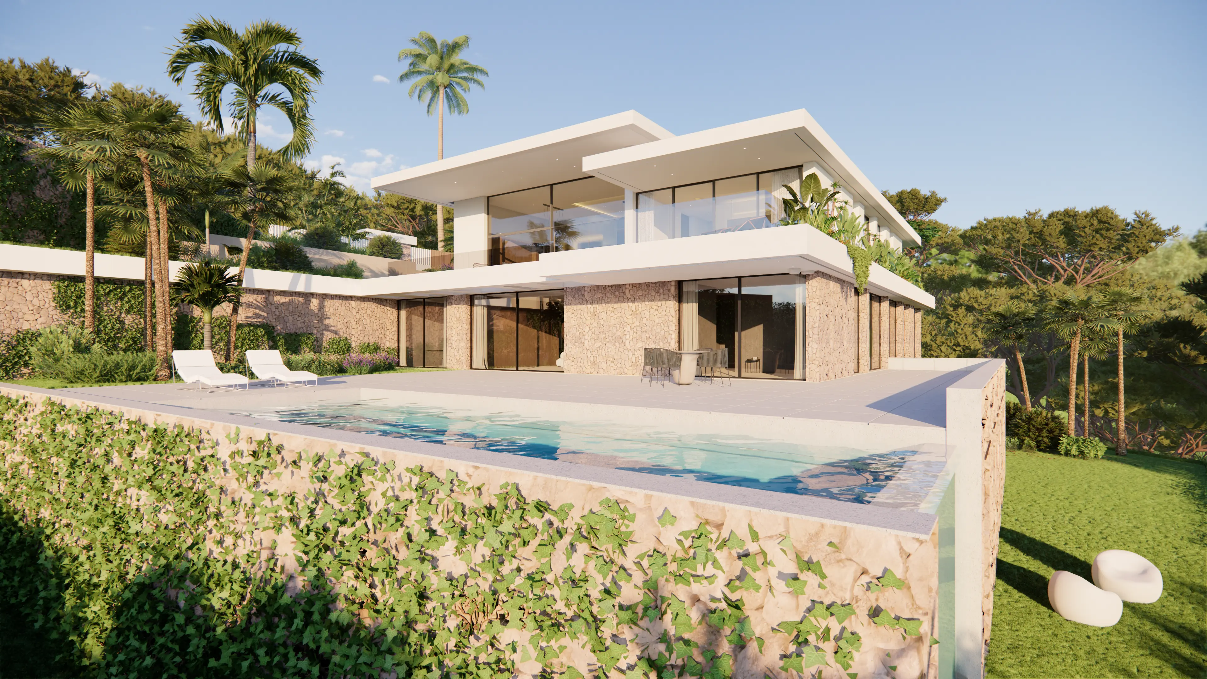 Step into a world of refined sophistication as you enter our thoughtfully designed villa, boasting a generous 750 square meters of carefully crafted living space. Immerse yourself in the tranquility of undisturbed mountain vistas and breathtaking sea views that envelop the property, allowing you to connect with the surrounding beauty.